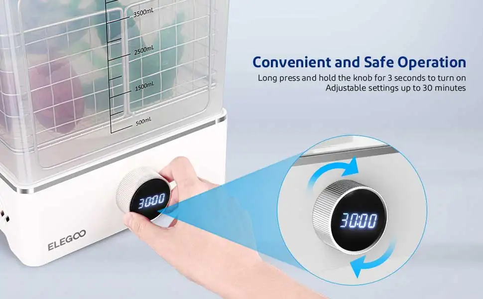 Operação fácil e intuitiva Com um único botão, basta pressionar e segurar para ligar a máquina, em seguida, girar o botão para definir um tempo apropriado para lavar ou curar, e seus modelos estarão prontos em pouco tempo. A tampa UV pode bloquear 99,9% dos raios ultravioleta e proteger sua visão durante a pós-cura.